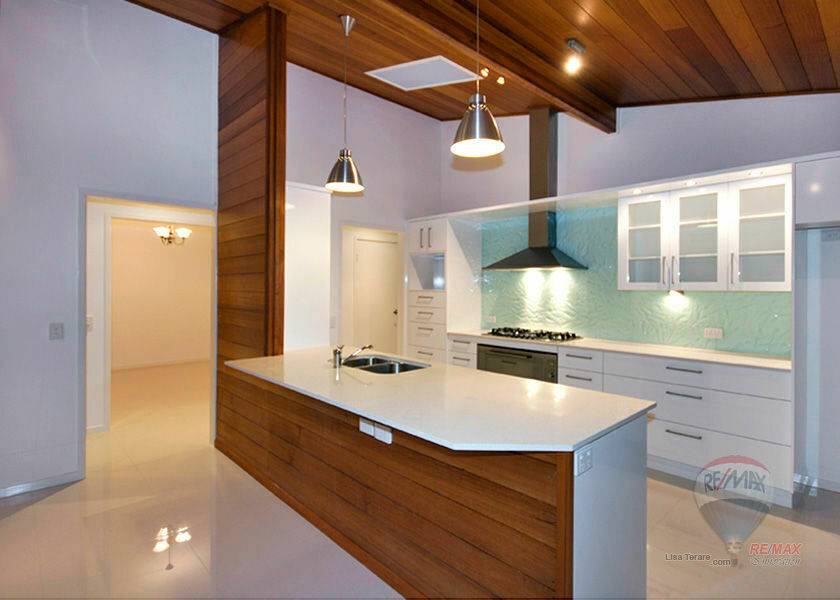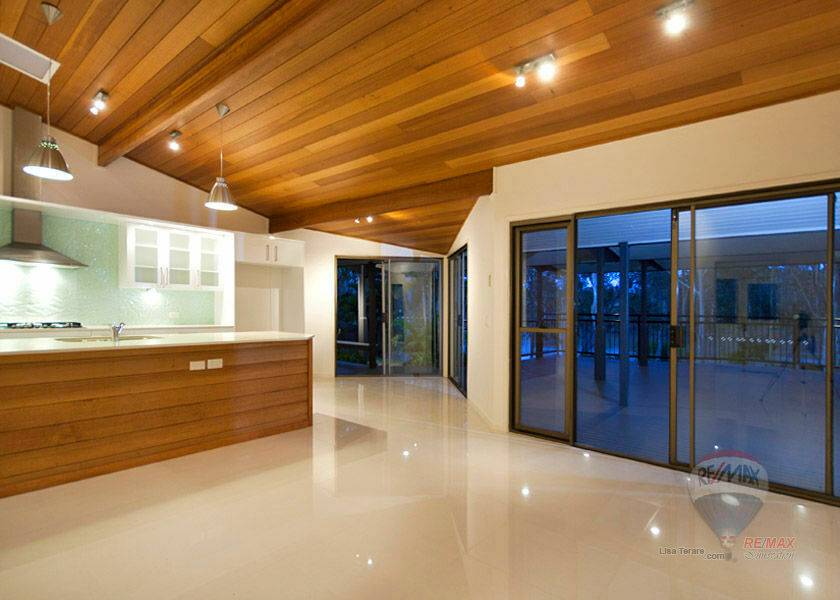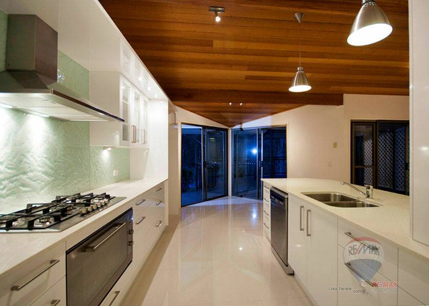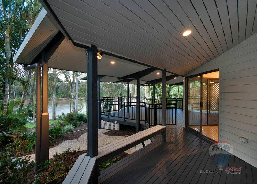 The entertainment area spills out on to a large weather proof deck with magnificent views of the Brisbane River. Pathways that outline the well kept gardens lead you into the large back yard.