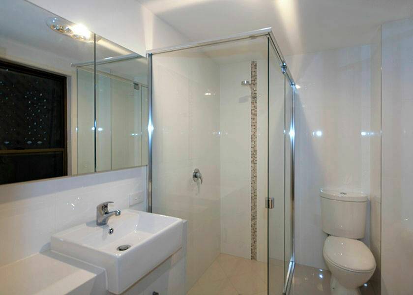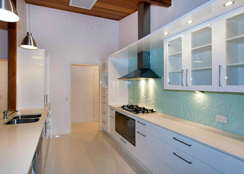 The brand new kitchen has stainless steel appliances gas cooking and range hood, glass splash backs, modern soft close drawers for easy access and stainless steel hanging down lights that add that perfect amount of light.