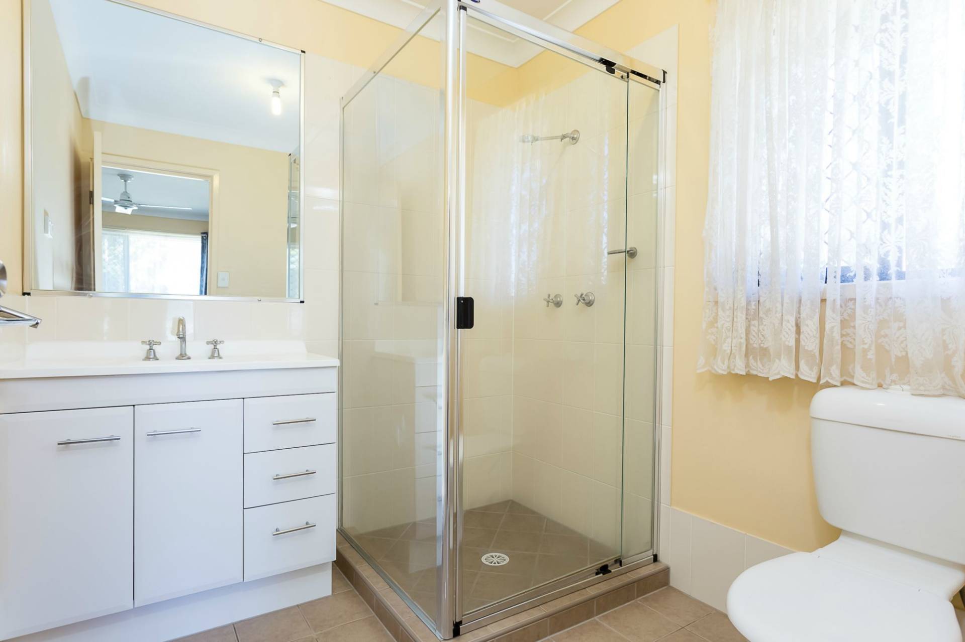 - 3 bedrooms all with built-ins and fans, a modern family bathroom with separate toilet.