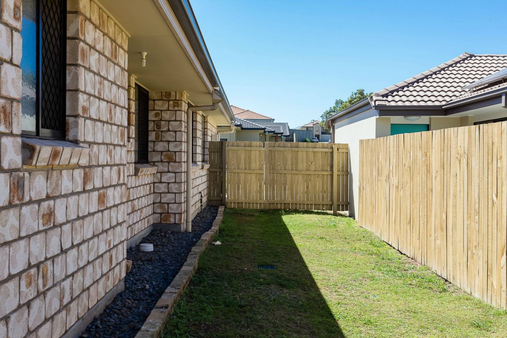 The low maintenance gardens are very peaceful, private & secure with full fencing and offerring a variety of lawns and paved areas for adults to entertain and children to play.