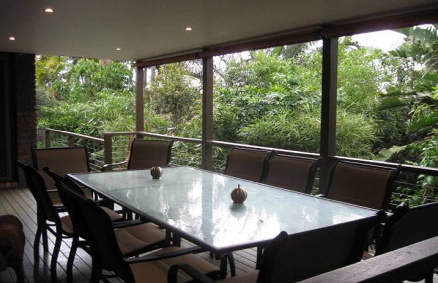 - Large deck in a leafy setting
