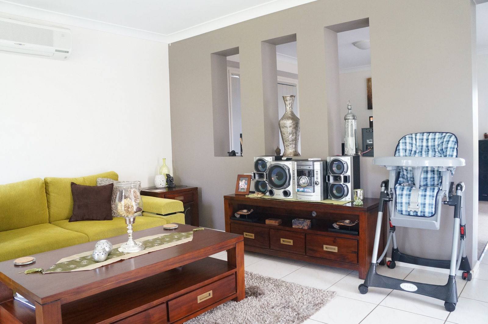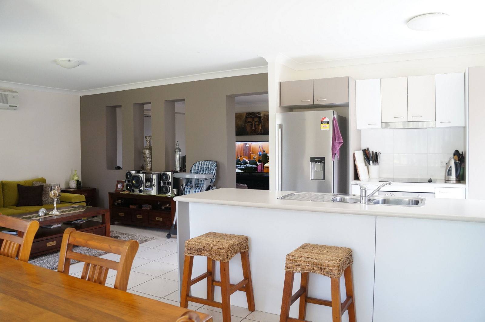 - Open plan kitchen, dining and air conditioned family room
