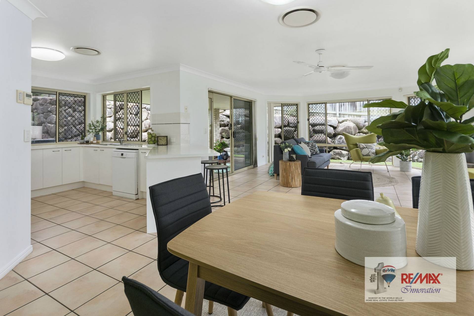 - Open plan kitchen, family and dining