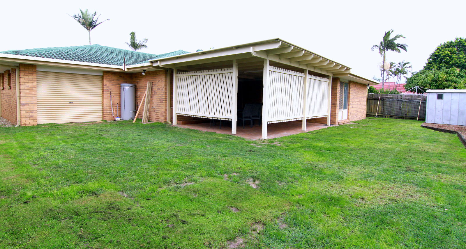 There 's a large private entertaining area, large garden shed, single lock up garage and is very low maintenance with loads of back yard space for a swimming pool and children to run around in.
