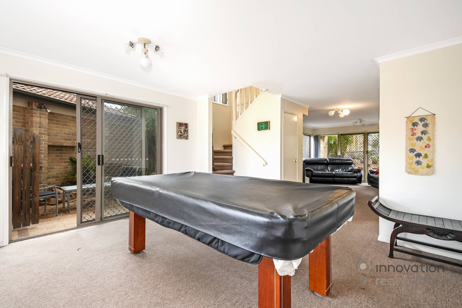 Upstairs hosts 3 bedrooms with built-in wardrobes, a study and main bathroom. The master bedroom has an ensuite.