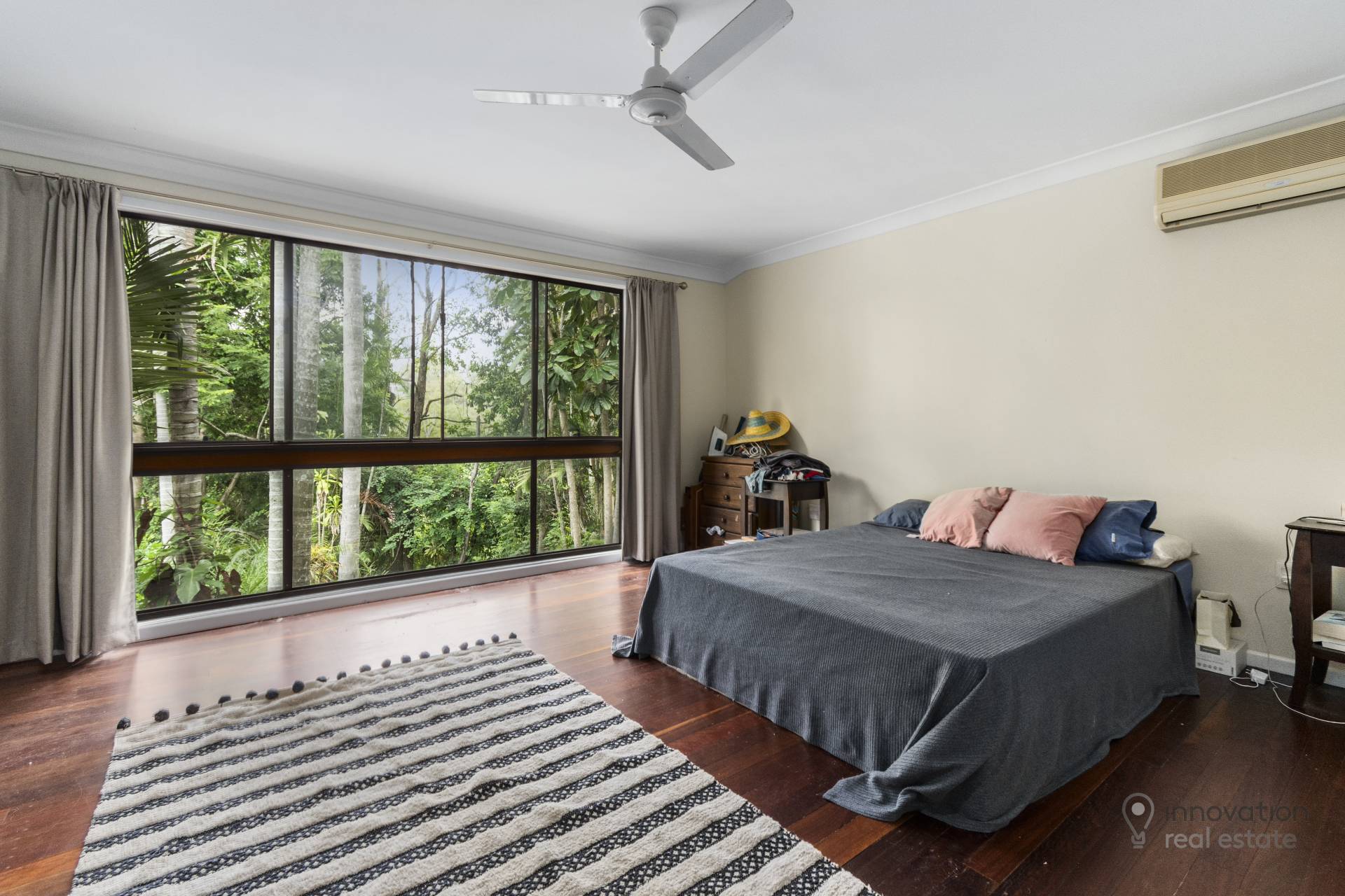• Main bedroom  with built-ins, ceiling fan, air-conditioning and ensuite with double vanity, separate bath and shower