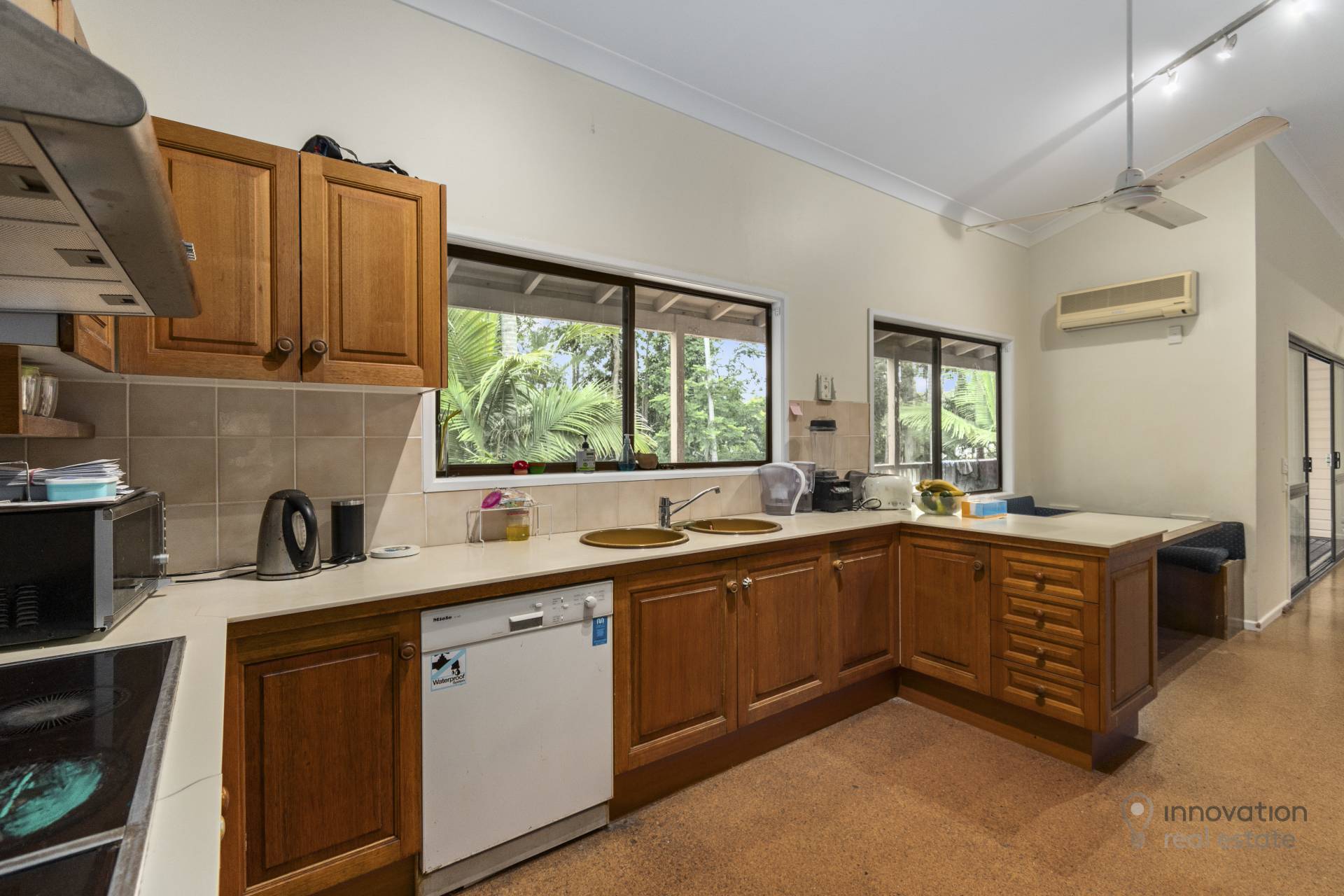 • Kitchen with air-conditioning, dishwasher, electric cooktop and oven